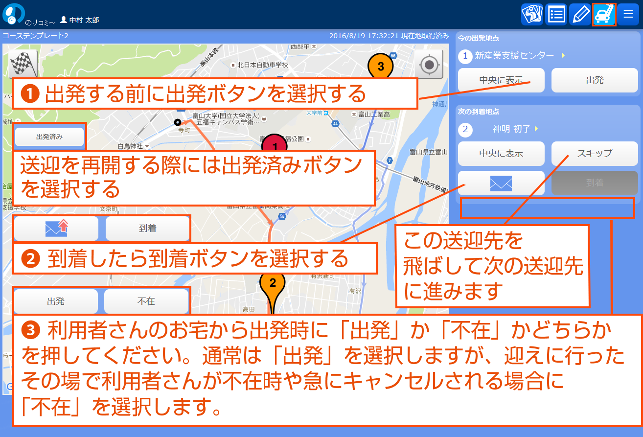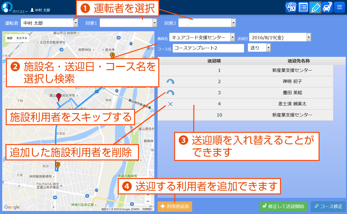 ※送迎車の運転手および同乗するスタッフを登録してください。