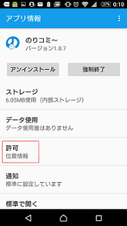 - 「アプリ情報」画面に戻り、「許可」の項目に「位置情報」の表示があるかご確認ください。